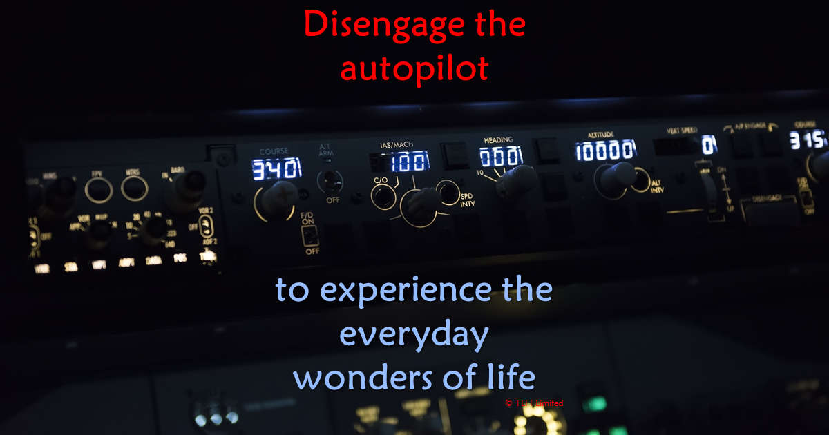 As life becomes busier, it is often easy to lose track of what you did from one week to the next. Moving through life on autopilot may seem like an effective way to get things done, but often you are just carrying out daily tasks. Take a moment to disengage the autopilot and pause at least once a day, to experience the moment and wonder of life. Then you will find that life can become more meaningful and you will experience the simple everyday moments that make life beautiful.