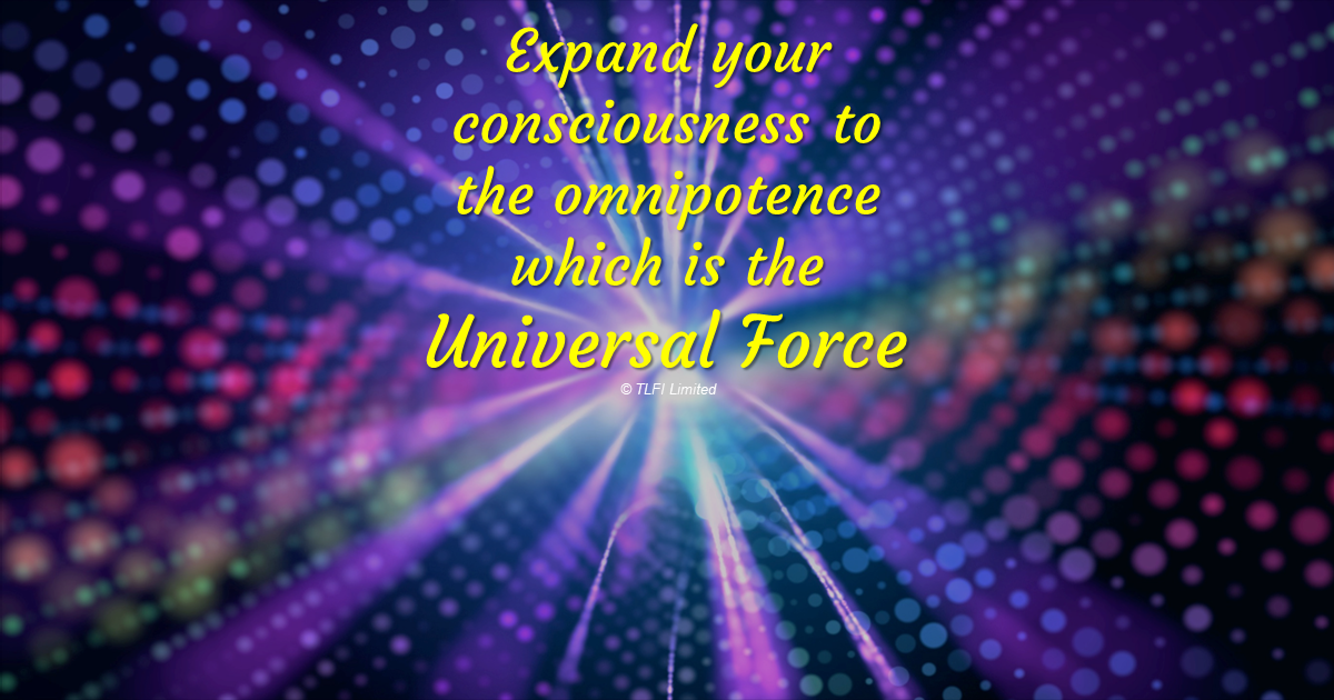 The omnipotent Universal Force permeates all things and manifests to keep them vital, without which, all matter would decay into nothingness. The Universal Force is within all time and space, being the limitless creative energy of perfect harmlessness. Learning how to harmonise with the Universal Force brings forward the fullest state of illumement attained through cognition.