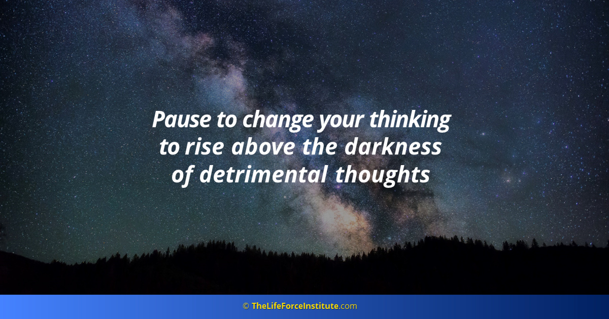 Pause to evaluate and change your thinking, so that you may rise above the darkness of detrimental thoughts to bring about wellbeing of self.