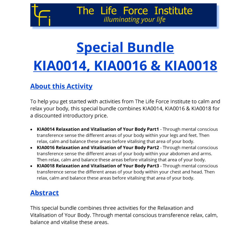This Kickstarter activity provides the second procedure for the relaxation and vitalisation of the physical body for your wellbeing.