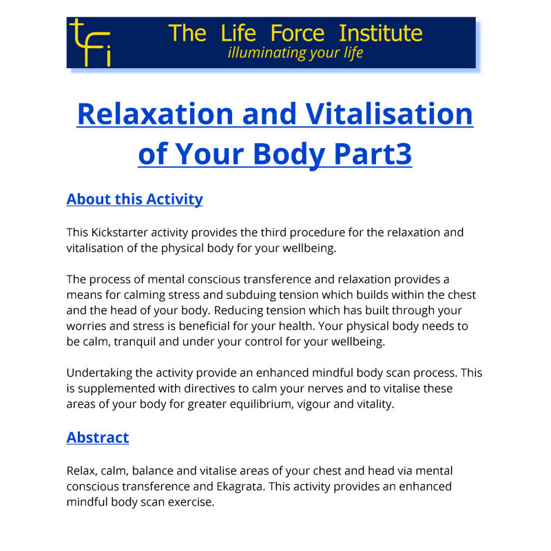 This Kickstarter activity provides the third procedure for the relaxation and vitalisation of the physical body for your wellbeing.