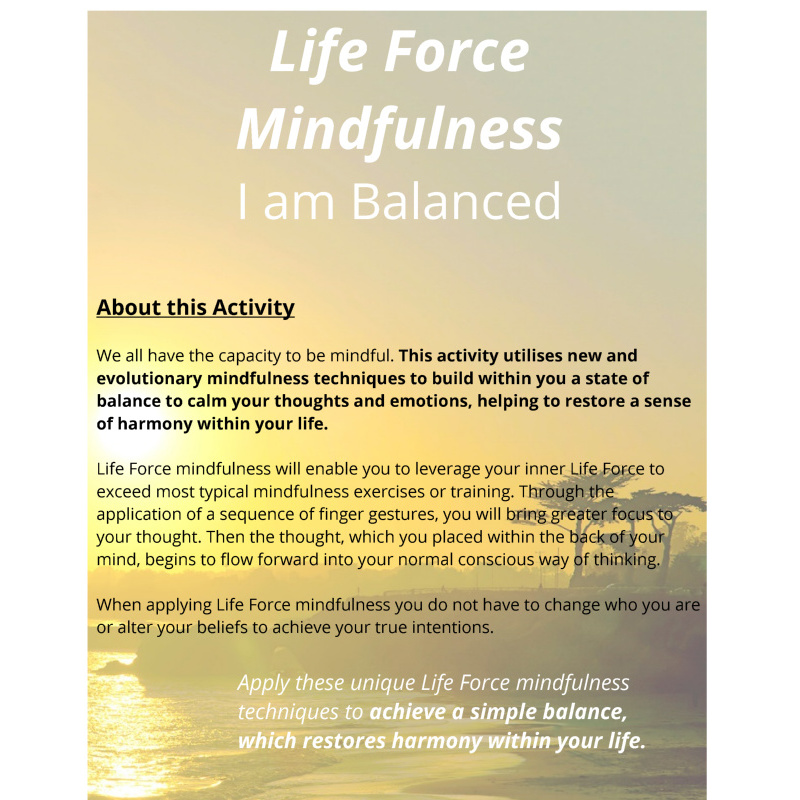 Apply these unique Life Force mindfulness techniques to achieve a simple balance, which restores harmony within your life.