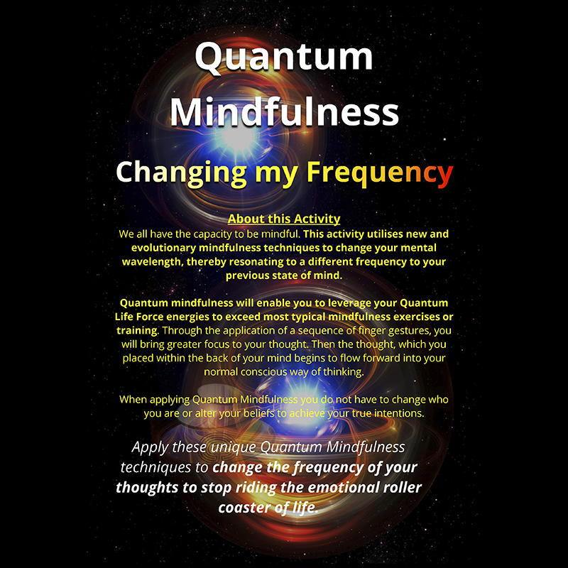 Quantum mindfulness will enable you to leverage your Quantum Life Force energies to exceed most typical mindfulness exercises or training. Through the application of a sequence of finger gestures, you will bring greater focus to your thought. Then the thought, which you placed within the back of your mind begins to flow forward into your normal conscious way of thinking.